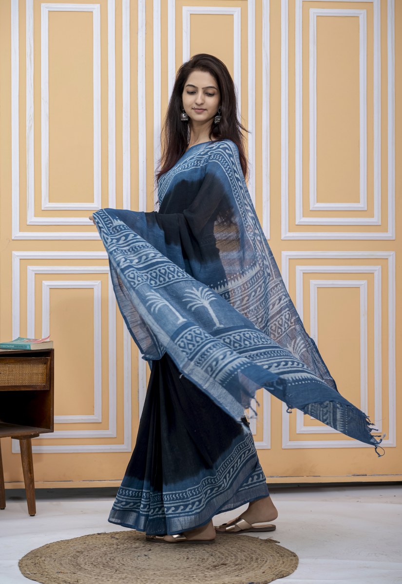 Rajasthani Hand Block Print Linen Sarees: Beautiful Fabric from Jaipur
